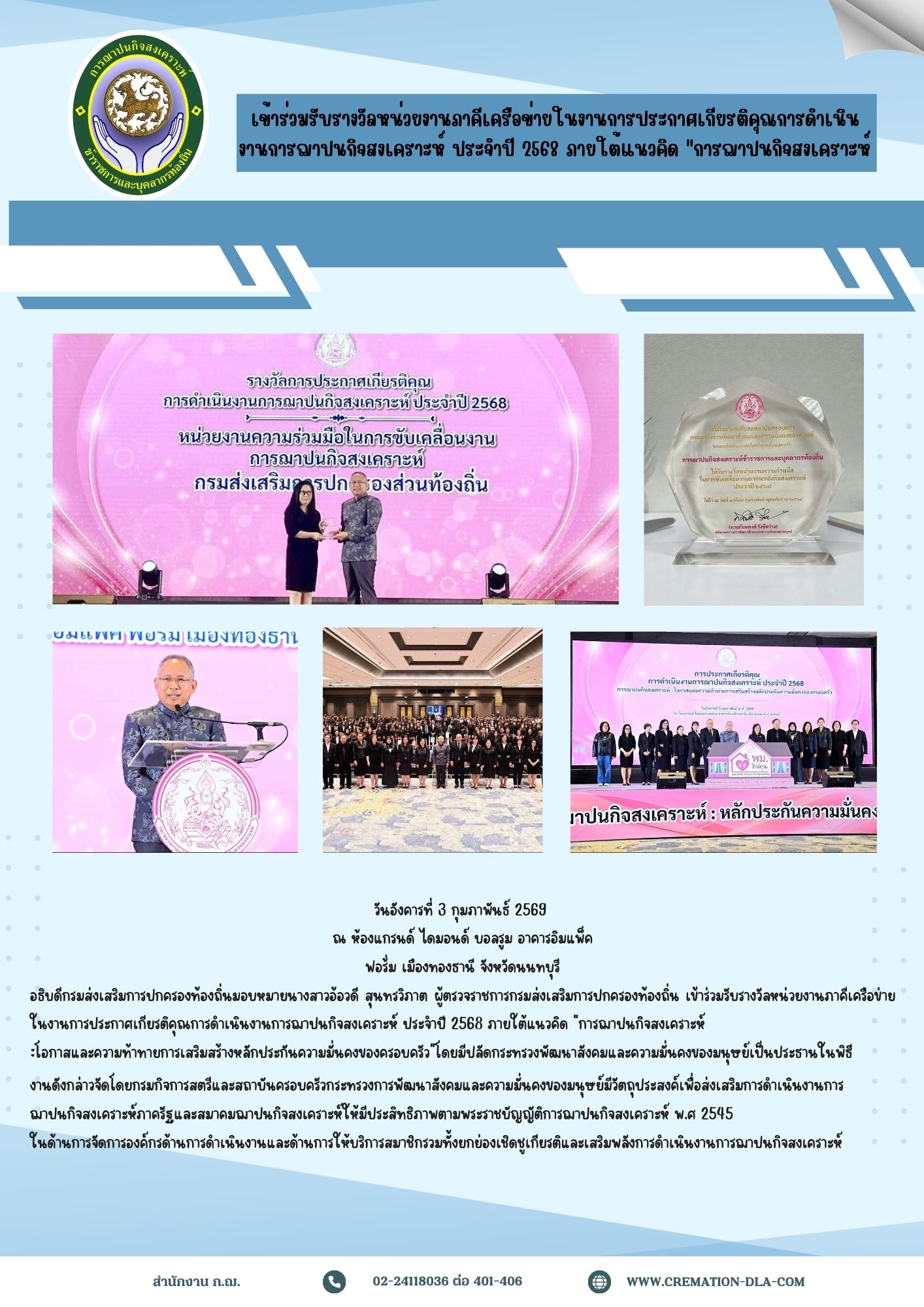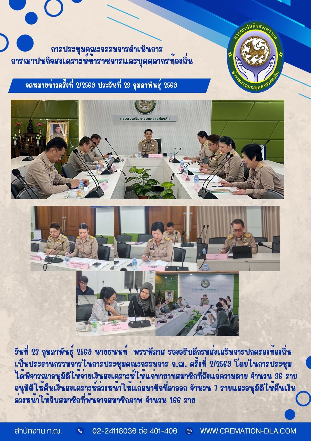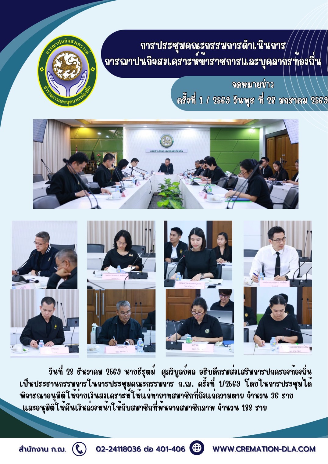 ครอบครัวมั่นคง สังคมเสมอภาค เพื่อประโยชน์สุขแก่บุคลากร วัตถุประสงค์เพื่อสงเคราะห์ซึ่งกันและกัน โดยไม่แสวงหาผลกำไร สำหรับข้าราชการและบุคลากรท้องถิ่น กว่า 70 ปี ชำระเงินสงเคราะห์ สมัครสมาชิก บริการของเรา หนังสือเรียกเก็บเงินสงเคราะห์ประจำเดือน ดาวน์โหลดหนังสือเรียกเก็บเงินสงเคราะห์ประจำเดือน ชำระเงินสงเคราะห์ ช่องทางชำระเงินที่สะดวก รวดเร็ว สมัครสมาชิก ก.ฌ. เชิญชวนบุคลากรท้องถิ่นสมัครสมาชิก ตรวจสอบสถานะสมัคร ตรวจสอบสถานะการสมัครเข้าเป็นสมาชิก สมัครสมาชิก ก.ฌ. เชิญชวนข้าราชการและบุคลากรท้องถิ่นที่สนใจ สมัครเข้าร่วมเป็นสมาชิกการฌาปนกิจสงเคราะห์ข้าราชการและบุคลากรท้องถิ่น กรมส่งเสริมการปกครองท้องถิ่น สมัครสมาชิก ก.ฌ. ตรวจสอบสถานะสมัคร เงินสงเคราะห์ประจำเดือน และจำนวนสมาชิก ณ ปัจจุบัน เงินสงเคราะห์ประจำเดือน กุมภาพันธ์ 69 : 180 บาทมกราคม,ค่าบำรุงปี 69 : 230 บาทธันวาคม 68 : 160 บาทพฤศจิกายน 68 : 195 บาทตุลาคม 68 : 185 บาท จำนวนสมาชิก : 27,540 คนเงินสงเคราะห์ที่ทายาทได้รับ : 132,592.00 บาท Facebook Line Youtube